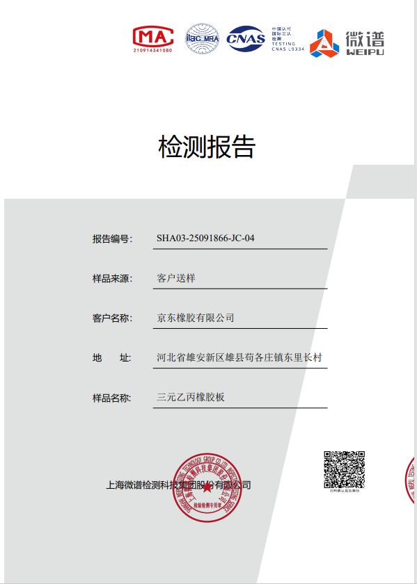 京東橡膠三元乙丙橡膠板檢測報告